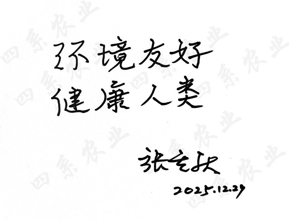 张重庆教授用四系农业的核心理念“环境友好,健康人类”给朱思浩院士题词